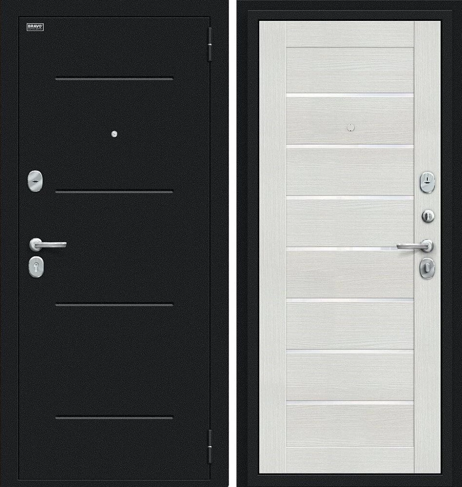Надежная входная Дверь Браво Техно Букле черное/Bianco Veralinga премиум класса по цене 31 421 руб. Большая толщина стали защитит от проникновения в ваш дом, квартиру или коттедж. Используется очень качественная фурнитура: замки, цилиндры, ручки, защелки. Покрытие и отделка двери изготовлено под внимательным контролем производителя. Дверь имеет долгий срок службы и гарантию.